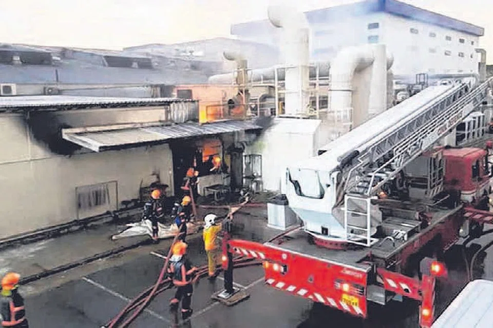 ஜூகூனில் பதனீட்டுத் தொழிற்சாலை ஒன்றில் தீ மூண்டது. சிங்கப்பூர் குடிமைத் தற்காப்புப் படை தீயை அணைத்தது. படம்: சிங்கப்பூர் குடிமைத் தற்காப்புப் படை ஃபேஸ்புக்