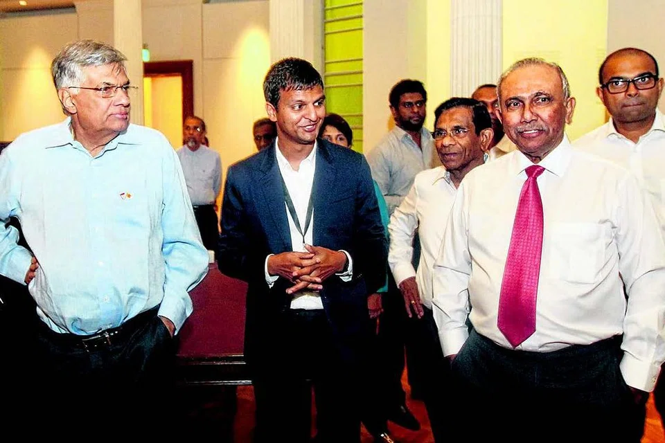 இலங்கைப் பிரதமர் ரணில் விக்ரமசிங்கேவுக்கு (இடது) சிங்கப்பூர் கலைக்கூடத்தின் அம்சங்களை விளக்குகிறார் அதன் மூத்த பொறுப்பு அதிகாரி திரு ஷபிர் ஹுசேன் முஸ்தஃபா (நடுவில்). இலங்கைக்கான சிங்கப்பூர் தூதர் திரு எஸ். சந்திரதாஸ், கல்வி, தகவல் தொடர்பு துணை அமைச்சர் திரு ஜனில் புதுச்சேரி ஆகியோரும் உடன் இருந்தனர். படம்: திமத்தி டேவிட்