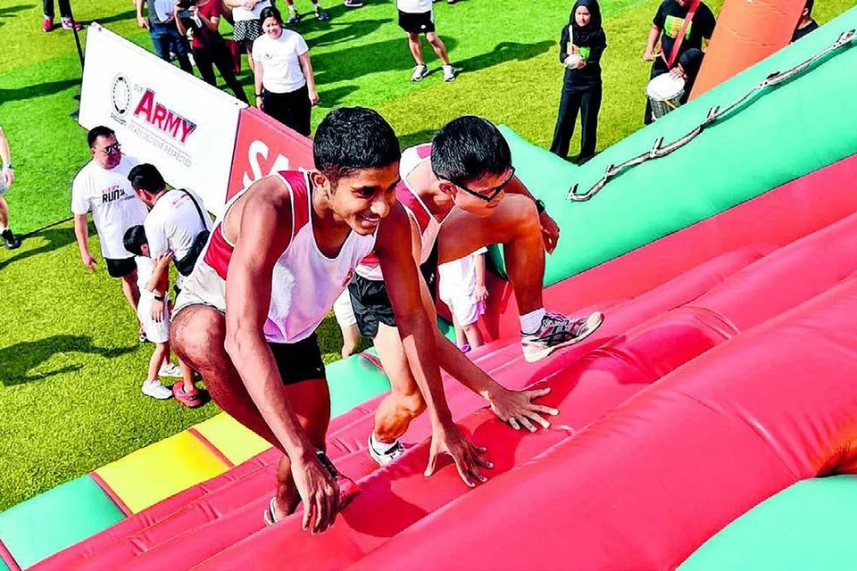 ஞாயிற்றுக்கிழமை நடைபெறவிருக்கும் சாஃப்ராவின் 'ஆர்மி ஹால்ஃப் மாரத்தான்' என்றழைக்கப்படும் நெட்டோட்டத்தில் பங்குபெறும் தேவதாஸ், லிம் ஸியாம் ஆகியோர் பயிற்சியில் ஈடுபட்டுள்ளனர். படம்: சாஃப்ரா.