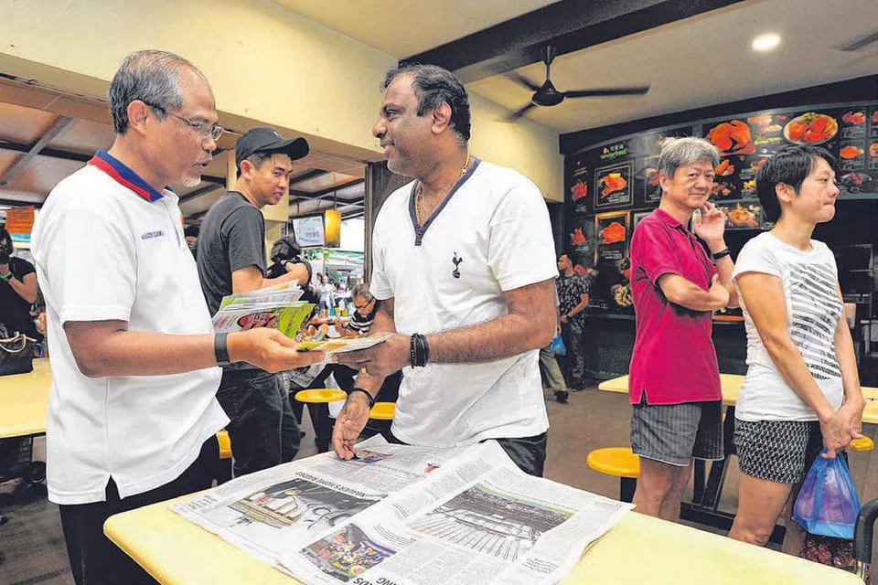 நாடெங்கும் ஸிக்கா விழிப்புணர்வை ஏற்படுத்தும் இரு வார முயற்சியின் ஒரு பகுதியாக தெம்பனிஸ் வெஸ்ட் சமூக நிலையத்தில் ஸிக்கா வைரஸ் குறித்த கையேடுகளை குடியிருப்பாளர்களிடம் நேற்று அவர் வழங்கினார். படத்தில் தெம்பனிஸ் ஸ்திரீட் 81ல் உள்ள கோப்பிக் கடையில் விமானப் பணியாளரான திரு கே.மோகனிடம், 57, கையேடுகளை வழங்குகிறார் அமைச்சர் மசகோஸ். படம்: ஸ்ட்ரெயிட்ஸ் டைம்ஸ்