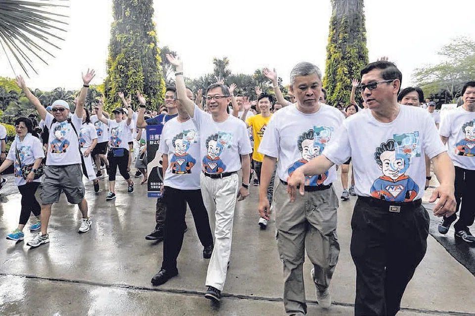 டாக்சி ஓட்டுநர்களிடையே நீரிழிவு நோய் குறித்த விழிப்புணர்வை ஏற்படுத்த பிரத்தியேகமாக ஏற்பாடு செய்யப்பட்ட மெதுநடையைத் தொடக்கி வைத்த சுகாதார அமைச்சர் கான் கிம் யோங் (வலமிருந்து மூன்றாவது). படம்: ஸ்ட்ரெய்ட்ஸ் டைம்ஸ்
