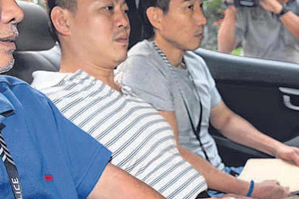 ஜூரோங் வெஸ்ட் ஸ்திரீட் 41ல் சந்தேகப்பேர்வழி (கோடுபோட்ட சட்டை) கைதானதாக போலிஸ் தெரிவித்தது. படம்: ஸ்ட்ரெய்ட்ஸ் டைம்ஸ்