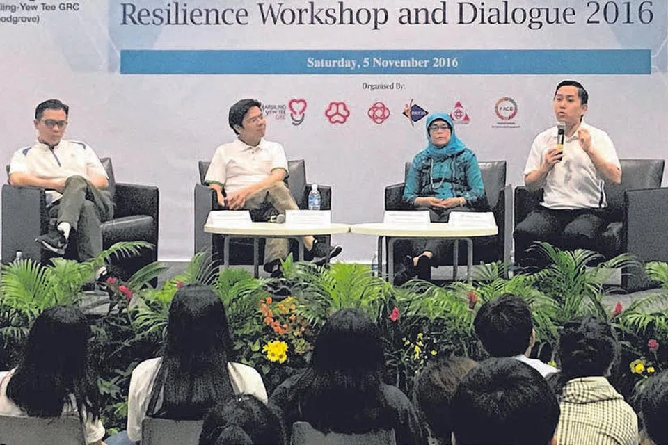 கலந்துரையாடலில் கலந்துகொண்ட மார்சிலிங்- யூ டீ குழுத் தொகுதி நாடாளுமன்ற உறுப்பினர்கள் (இடமிருந்து) திரு ஒங் டெங் கூன், தேசிய வளர்ச்சி அமைச்சர் லாரன்ஸ் வோங், நாடாளுமன்ற நாயகர் ஹலிமா யாக்கூப், திரு அலெக்ஸ் யாம். படம்: பெரித்தா ஹரியான்