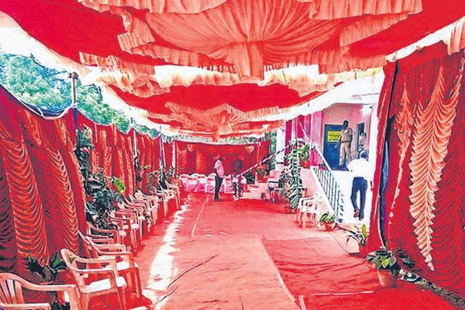 வாக்காளர்களை வரவேற்க பந்தலில் விரிக்கப்பட்டு இருந்த சிவப்புக் கம்பளம். இதைக் கண்டு பெரும்பாலானோர் ஆச்சரியம் அடைந்தனர். படம்: தமிழகத் தகவல் ஊடகம்