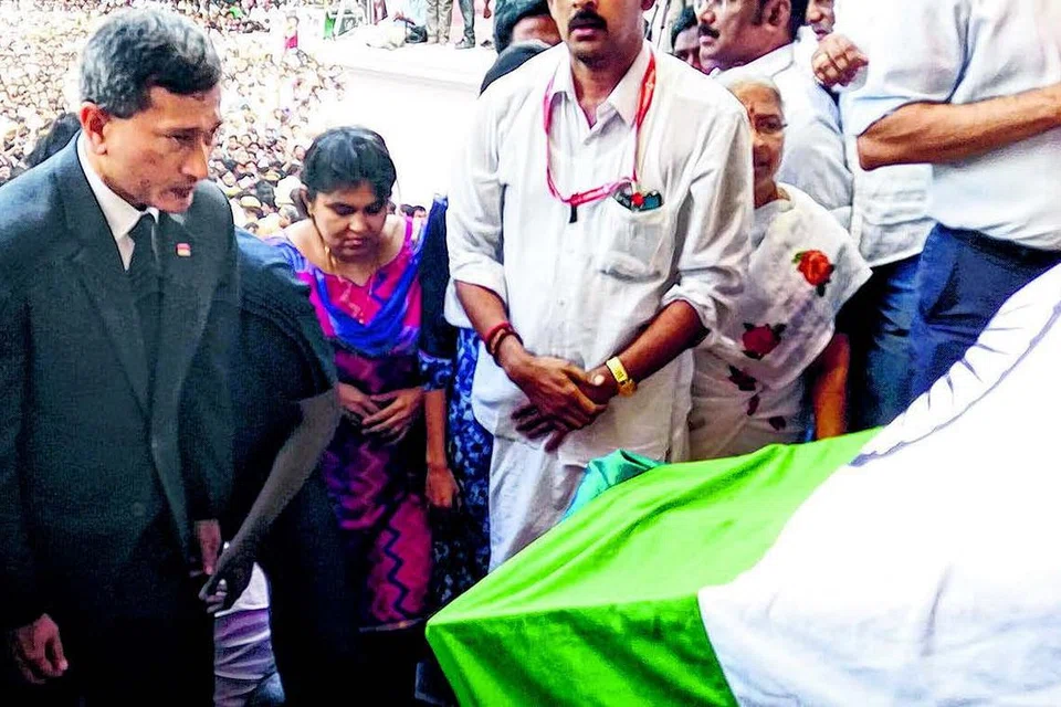 சிங்கப்பூர் வெளியுறவு அமைச்சர் டாக்டர் விவியன் பாலகிருஷ்ணன், ஜெயலலிதா உடலுக்கு இறுதி அஞ்சலி செலுத்தினார். படம்: வெளியுறவு அமைச்சு