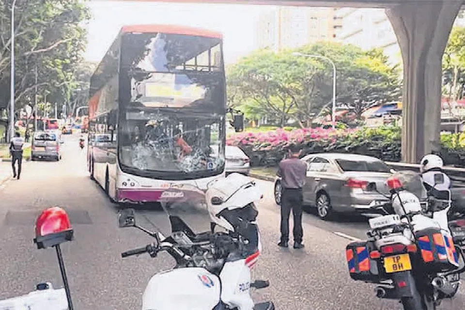 விபத்தில் பேருந்தின் முன் கண்ணாடி நொறுங்கியது. படம்: ரோட்ஸ்.எஸ்ஜி