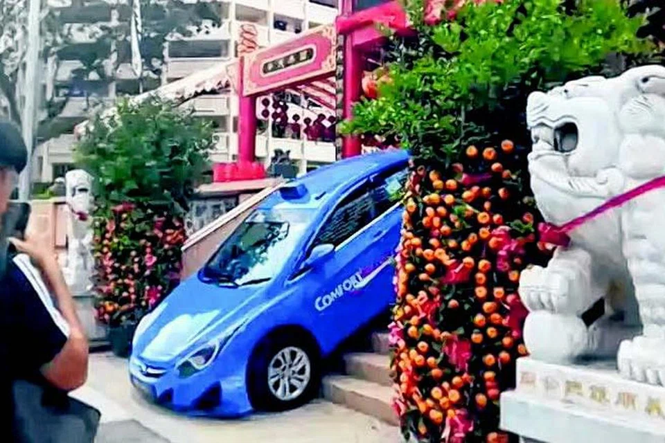 யீஷூன் இன்டஸ்ட்ரியல் ஸ்திரீட் 1ல் உள்ள ஓர் ஆலயத்தின் படிக்கட்டுகளை வெளி யேறும் வழி என நினைத்து கம்ஃபர்ட் டெல்குரோ டாக்சி ஓட்டுநர் ஒருவர் அதில் வாகனத்தை இறக்கிவிட்டார். அந்த டாக்சி ஓட்டுநர் அங்கு ஒரு பயணியை அப்போதுதான் தன் வாகனத்தில் இருந்து கீழே இறக்கிவிட்டிருந்தார். அதையடுத்து, அங்கிருந்து புறப்பட்டுச் செல்ல முயன்ற டாக்சி ஓட்டுநர், ஆலயத் தின் படிக்கட்டுகளை வெளியேறும் வழி யாக நினைத்து தமது வாகனத்தை அதில் இறக்கிவிட்டார் என்று கம்ஃபர்ட்டெல்குரோ நிறுவனத்தின் தகவல் தொடர்பு அதிகாரி திருவாட்டி டாமி டான் தெரிவித்தார்.