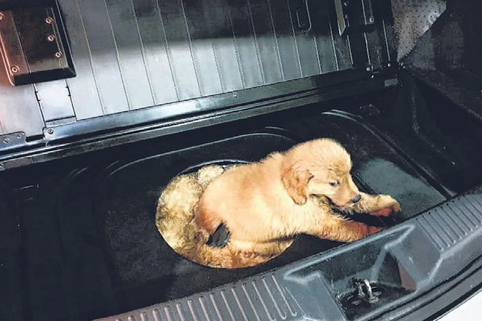 காரின் பின்புறம் மாற்று டயர் வைக்கப்பட்டிருக்கும் பகுதிக்குக் கீழே அடைத்து வைக்கப்பட்டிருந்ததால் மூன்று நாய்க்குட்டிகள் இறந்துவிட்டன. படம்: குடிநுழைவு, சோதனைச்சாவடி ஆணையம்