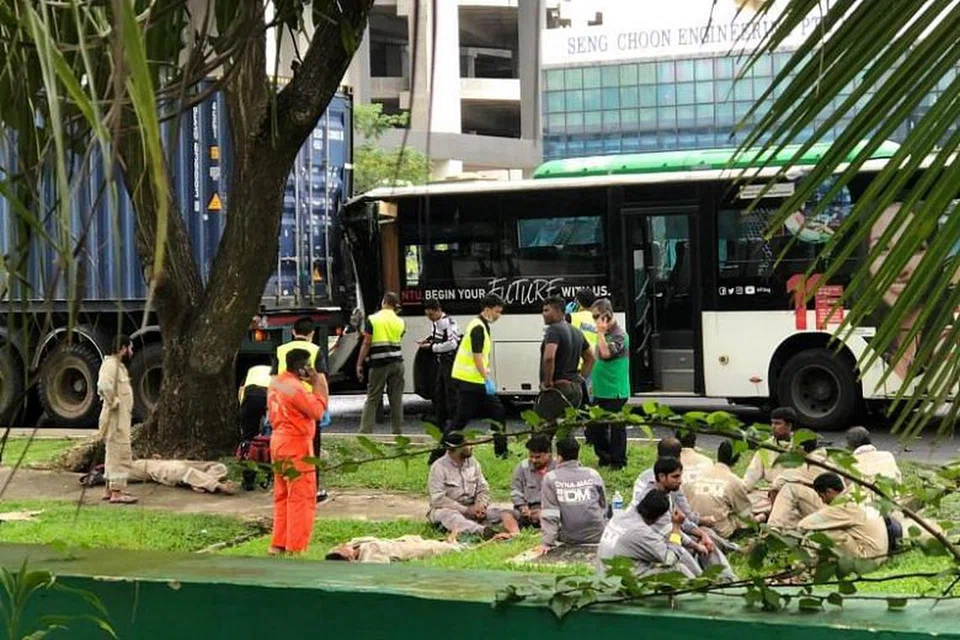 பயனியர் ரோட்டில் பேருந்து ஒன்றுடன் லாரி மோதியதைத் தொடர்ந்து 13 பேர் காயமடைந்தனர். உதவிக்கான அழைப்பு நேற்று மாலை 5.12 மணிக்கு வந்ததாக போலிசார் தெரிவித்துள்ளனர்.