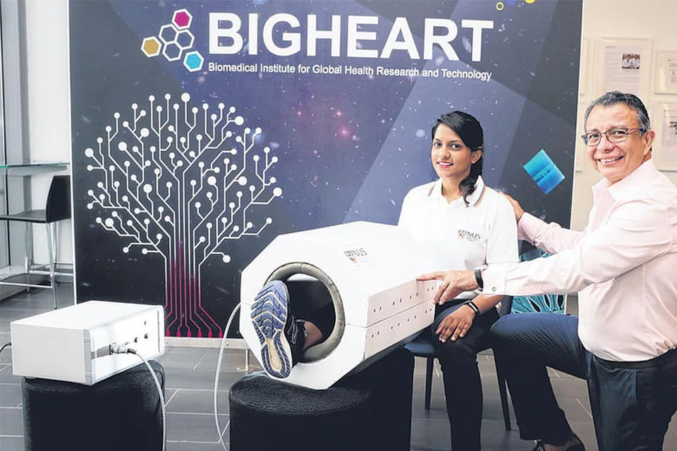 சிங்கப்பூர் தேசிய பல்கலைக்கழகத்தைச் சேர்ந்த ஆய்வாளர்கள், காந்தப்புலம் மூலம் தசைகளை வலுவடையச் செய்யும் புதிய சாதனத்தைக் கண்டுபிடித்துள்ளனர். 'எம்ரீகன்' என்பது சாதனத்தின் பெயர். உடற்பயிற்சியின்போது உயிரணுக்களில் ஏற்படும் வளர் சிதை மாற்றத்தைப் போன்றே காந்தப்புலம் மூலம் உயிரணுக்கள் தூண்டப்பட்டு தசை வலுவடையச் செய்யப்படுகிறது. இதனால் ஒருவரின் கால்களில் உள்ள தசைகளை வலுவாக்க முடியும் என்று ஆய்வாளர்கள் கூறியுள்ளனர். இணைப் பேராசிரியர் அல்ஃபிர டோ ஃபிராங்கோ-ஒப்ரிகன் தலைமையில் சிங்கப்பூர் தேசிய பல்கலைக்கழகத்தின் உலகளாவிய மருத்துவ ஆய்வு, தொழில்நுட்ப உயிர்மருத்துவ கழகம், யோங் லூ லின் மருத்துவ பள்ளியின் அறுவை சிகிச்சைப் பிரிவு ஆகியவற்றின் 12 ஆய்வாளர்கள் 2015, 2017க்கு இடையே காந்தப் புலத்தைப் பயன்படுத்தி இரண்டு மருத்துவ சோதனைகளை மேற்கொண்டனர்.