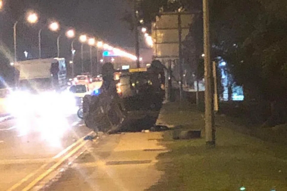 கவிழ்ந்த காரைக் காட்டும் படம் ஒன்று 'ஸ்டாம்ப்' தளத்தில் பதிவேற்றம் செய்யப்பட்டது. விபத்தின்போது அந்தக் காருக்குள் பயணிகள் இருந்தார்களா என்பது தெரியவில்லை.
