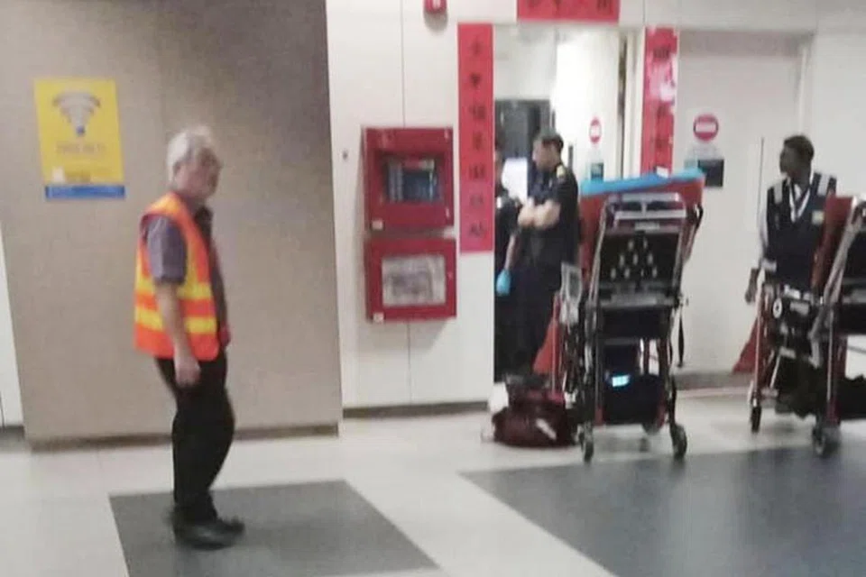 ஆத்திரத்தில் அந்தப் பெண் அருகில் இருந்த ஒப்பனை கடைக்குள் சென்று அங்கிருந்த கத்தரிக்கோலை எடுத்து தனது கணவரை தாக்கினார். சிங்கப்பூர் குடிமைத் தற்காப்புப் படையினரும் போலிசாரும் சம்பவ இடத்திற்குக் கிட்டத்தட்ட 20 நிமிடங்களுக்குப் பிறகு சென்றனர். அவர்கள் இருவரும் இரண்டு எஸ்சிடிஎஃப் மருத்துவ வாகனங்களில் சாங்கி பொது மருத்துவமனைக்குக் கொண்டு செல்லப்பட்டனர்.