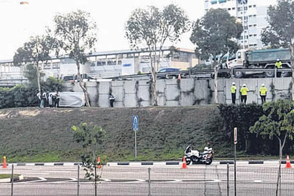 விபத்தில் சிக்கிய வாகனத் தின் முன்பக்க பகுதிகள் கழன்று விழுந்து கிடந்ததையும் கண் ணாடி நொறுங்கி இருந்ததையும் படங்கள் காட்டின. போலிஸ் புலன்விசாரணை நடக்கிறது.