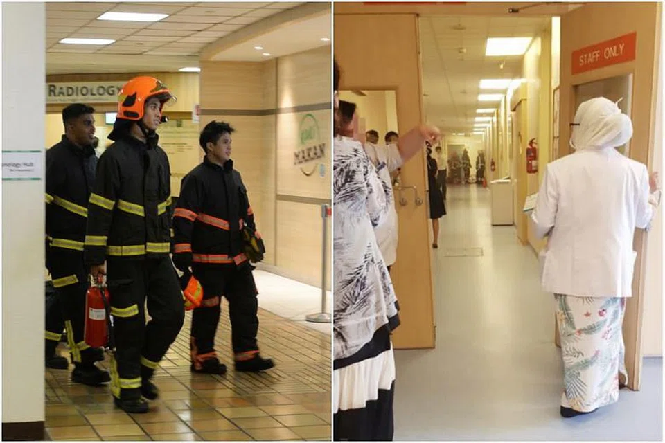 1 ஹாஸ்பிடல் டிரைவிலுள்ள அந்த மருத்துவமனையின் புளோக் 2-ன் ஒன்றாம் சுரங்கத்தளத்தில் நடந்த தீச்சம்பவம் குறித்து பிற்பகல் 1.50 மணிக்கு சிங்கப்பூர் குடிமைத் தற்காப்புப் படையினருக்குத் தகவல் கிடைத்தது. தீயினால் ஏற்பட்ட புகைமூட்டத்தால் குடிமைத் தற்காப்புப் படையினர் 70 பேரை மருத்துவமனையிலிருந்து வெளியேற்றினர்.