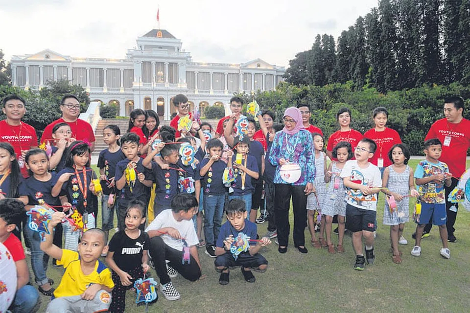 லைஃப் கம்யூனிட்டி சர்வீசஸ் சொசைட்டி மற்றும் 'ஷைன்' இளையர், குழந்தை களுக்கான சேவை நிலையத்தைச் சேர்ந்த 48 குழந்தைகள் அதிபருடன் சேர்ந்து கூண்டு விளக்குத் திருவிழாவை கொண்டாடி மகிழ்ந்தனர். 'இஸ்தானாவில் விருந்து' எனும் இந்நிகழ்ச்சி நேற்று நடைபெற்றது. படம்: ஸ்ட்ரெய்ட்ஸ் டைம்ஸ்