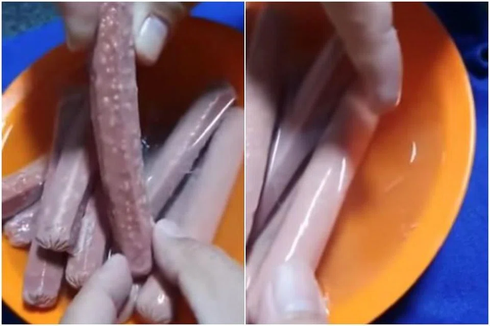 "சிக்கன் பிராங்க்ஸ்" எனும் பதப்படுத்திய கோழி உணவுப்பொருளைச் சுற்றி மிதப்பவை புழுக்கள் அல்ல என்று அந்த உணவுப்பொருளின் ஏற்றுமதியாளர் தெரிவித்திருக்கிறார்.
