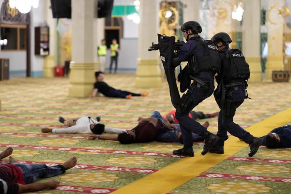 சிங்கப்பூரில் உள்ள வழிபாட்டுத் தலம் ஒன்றில் இத்தகைய பயங்கரவாத எதிர்ப்பு பாவனைப் பயிற்சி நடத்தப்பட்டிருப்பது இதுவே முதன்முறை.