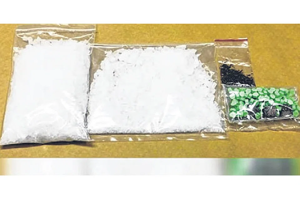 சிங்கப்பூர் ஆடவரிடமிருந்து 385 கிராம் ஐஸ், 32 கிராம் அபின், 100 எக்ஸ்டசி மாத்திரைகள், 50 எரிமின்-5 மாத்திரைகள், சிறிய அளவிலான கஞ்சா ஆகியவற்றை அதிகாரிகள் கைப்பற்றியுள்ளனர்.