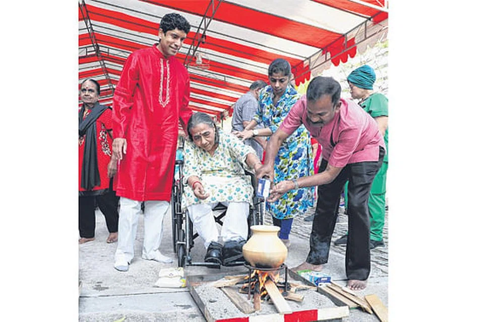பொங்கல் வைப்பதற்கான ஏற்பாடுகளை ஆஷ்ரமத்தில் தங்கியிருப்போர் செய்தனர்.