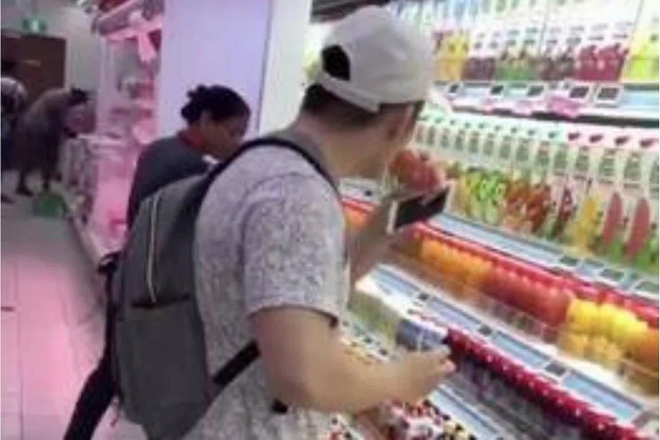காணொளியில் ஓர் இளையர் ஒரு போத்தலை எடுத்துக் குடித்துவிட்டு அதே இடத்தில் வைக்கிறார். பிறகு மற்றொரு போத்தலை எடுத்துக் குடித்துப் பார்த்து, என்டியுசி ஊழியர் நடந்துபோவதையும் பொருட்படுத்தாது, புளிக்கிறது என்று கூறி வைக்கிறார்.