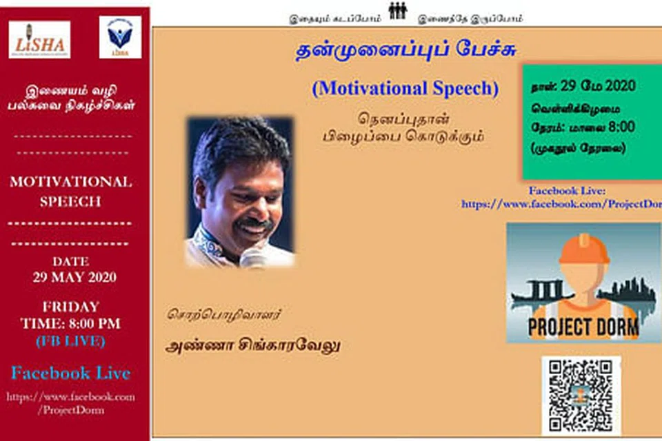 வெளிநாட்டு ஊழியர்களுக்கு இணையம் வழி கற்றல் மற்றும் பொழுதுபோக்கு நிகழ்ச்சிகளுக்கு லிஷா எனும் லிட்டில் இந்தியா வர்த்தகர்கள் மரபுடைமைச் சங்க மும் லிஷா இலக்கிய மன்றமும் ஏற்பாடு செய்துள்ளன.