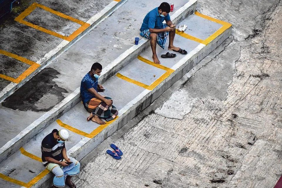வேலைக்குச் செல்லும்போது மட்டும் தங்கும் விடுதிகளைவிட்டு அங்கு தங்கும் வெளிநாட்டு ஊழியர்கள் வெளியே செல்லலாம்.