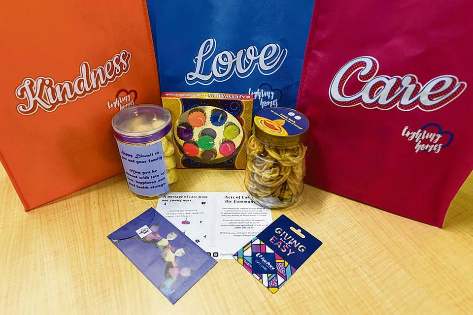 தீபாவளியை முன்னிட்டு ஒவ்வோர் ஆண்டும் நடைபெறும் 'லைட்டிங் ஹார்ட்ஸ், லைட்டிங் ஹோம்ஸ்' எனும் திட்டத்தின்கீழ் இம்முறை ஏறத்தாழ 350 தொண்டூழியர்கள், எளிதில் பாதிப்புக்கு உள்ளாகக்கூடிய குடும்பங்களிடம் விழாக்கால அன்பளிப்புப் பைகளை விநியோகம் செய்கின்றனர். அந்த வகையில் நேற்று முன்தினம் தொடங்கிய விநியோகப் பணி, வரும் சனிக்கிழமை வரை நடைபெறும்.