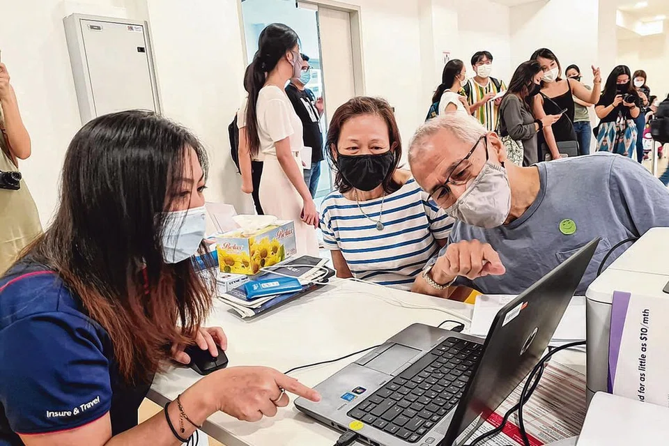 இணைய முன்பதிவுத் தளங்களில் முன்பதிவு செய்வதில் சிரமத்தை எதிர்நோக்குவோர் தீவெங்கும் சமூக மன்றங்கள் உள்ளிட்ட இடங்களில் அமைக்கப்பட்டுள்ள 69 முகப்புகளுக்குச் சென்று உதவி பெறலாம். தெம்பனிஸ் ஈஸ்ட் சமூக மன்றத்தில் அமைக்கப்பட்டிருக்கும் அத்தகைய முகப்புகளில் முன்பதிவு செய்ய நேற்று காலை அங்கு வந்தவர்களில் டாக்சி ஓட்டுநர் இங் பெங் லாமும் அவரது மனைவி ஓங் சூன் ஹுவாவும் அடங்குவர்.