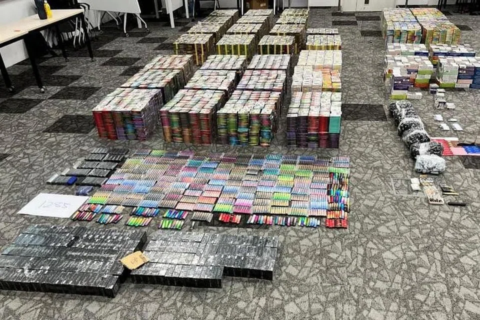 சுமார் 1400 மின்சிகரெட்டுகள், 78,000 மேற்பட்ட புகையிலை குச்சிகள் மற்றும் பல சாதனங்களும் கண்டுபிடிக்கப்பட்டன.