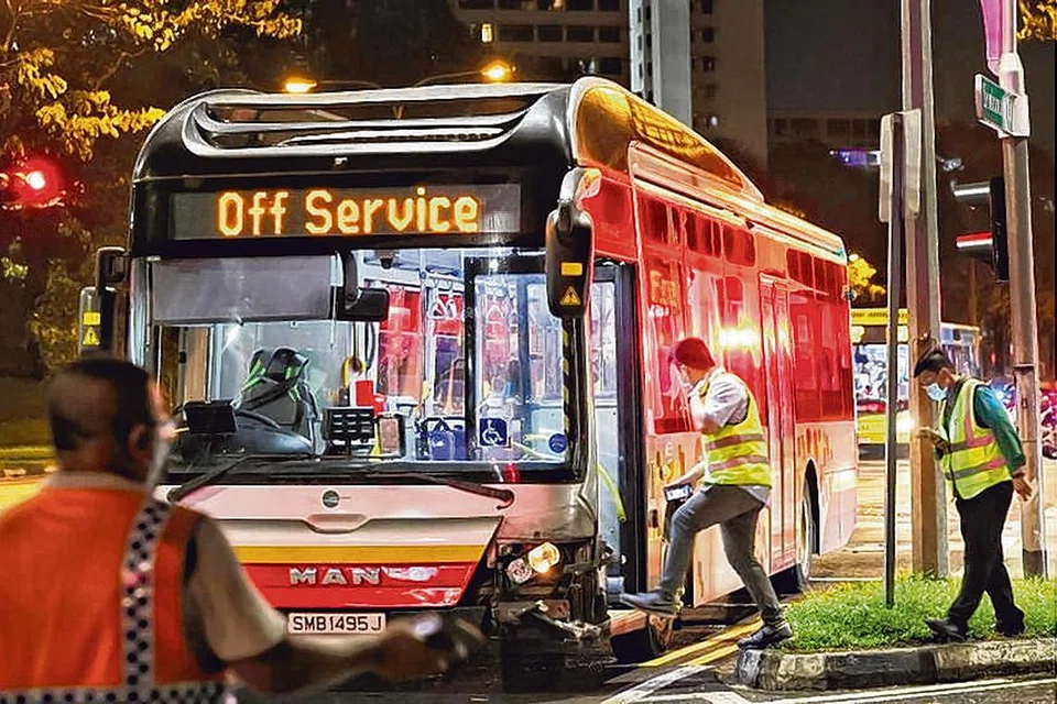 பேருந்துச் சேவை எண் 858, கம்பாஸ் அவென்யுவிற்கும் செம்பவாங் ரோட்டிற்கும் இடையிலான சாலைச் சந்திப்பில் இவ்வாறு மோதியது. இதையடுத்து முறையே 69 வயதும் 71 வயதும் ஆன பயணிகள் இருவர் மருத்துவமனைக்குக் கொண்டு செல்லப்பட்டனர்.