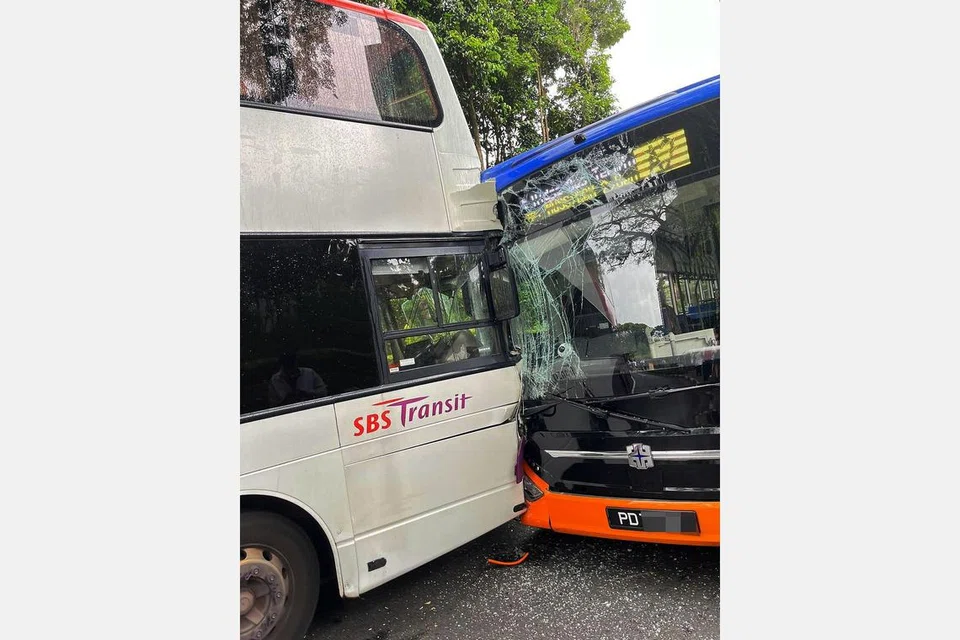 எஸ்பிஎஸ் டிரான்சிட் பேருந்தும் இடைவழிப் பேருந்தும் சிங்கப்பூர் தேசிய பல்கலைக்கழக வளாகத்தில் நேற்று விபத்துக்குள்ளாயின.