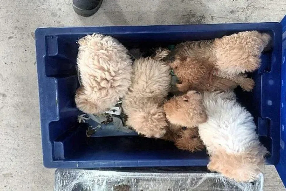 அப்போது நாய்க் குட்டி ஒன்று பெட்டியில் இருந்து தப்பி லாரிக்குள் இருந்ததை அதிகாரி ஒருவர் கண்டார்.