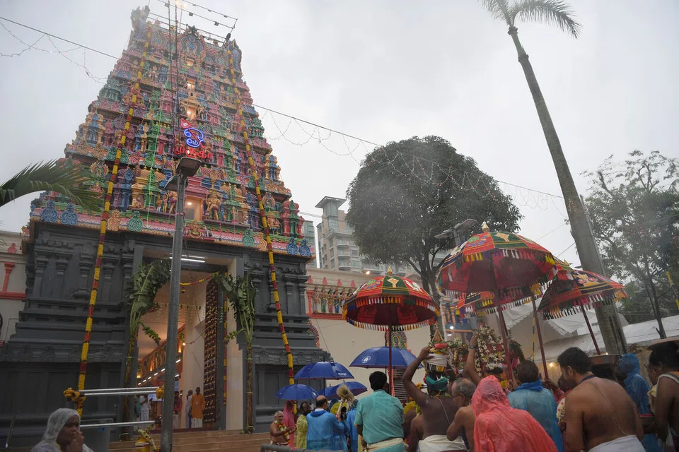 டேங்க் ரோட்டில் புதிதாகப் பொலிவு பெற்றுள்ள அருள்மிகு தெண்டாயுதபாணி கோயில் குடமுழுக்கு விழாவைக் காண வியாழன் (ஜூன் 1 ஆம் தேதி) காலை வந்த பக்தர்களுடன் மழை மேகங்களும் திரண்டன.