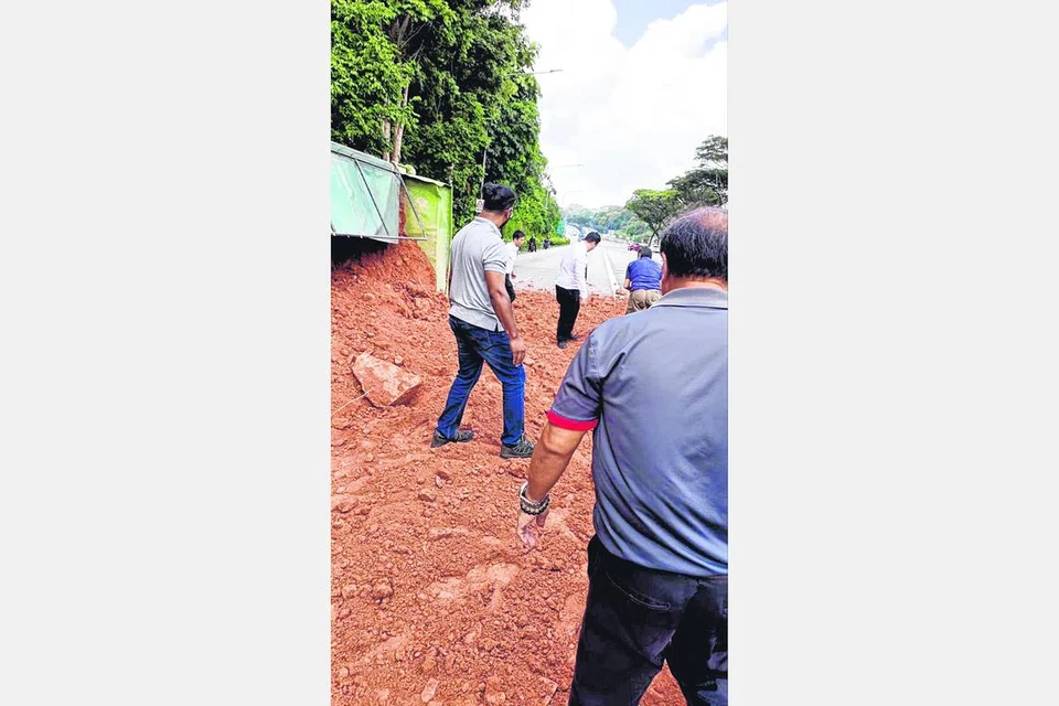 இணையக் குழுக்களில் பரவும் புகைப்படங்கள், காணொளிகளில், இருவழிச் சாலையின் இடது பாதையில் ஒரு பச்சை நிற சரக்கு வாகனம் வலது பக்கமாக கவிழ்ந்திருப்பதையும், செந்நிற மண்ணும் கற்களும் வலது பக்க தடம் வரை பரவியிருப்பதையும் காட்டுகின்றன.