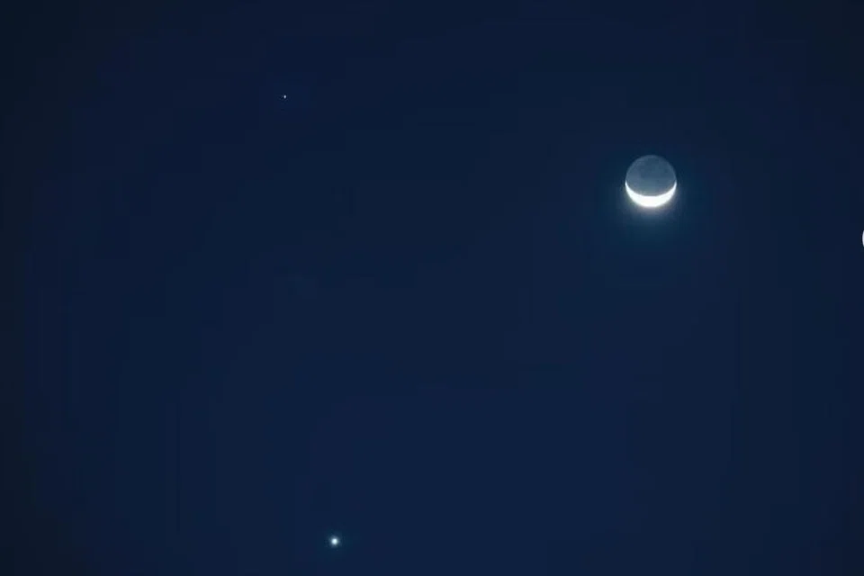 சிங்கப்பூர் வானில் வியாழக்கிழமை இரவு முக்கோண வடிவில் நிலா, செவ்வாய், வெள்ளிக் கோள்கள் தோன்றின.
