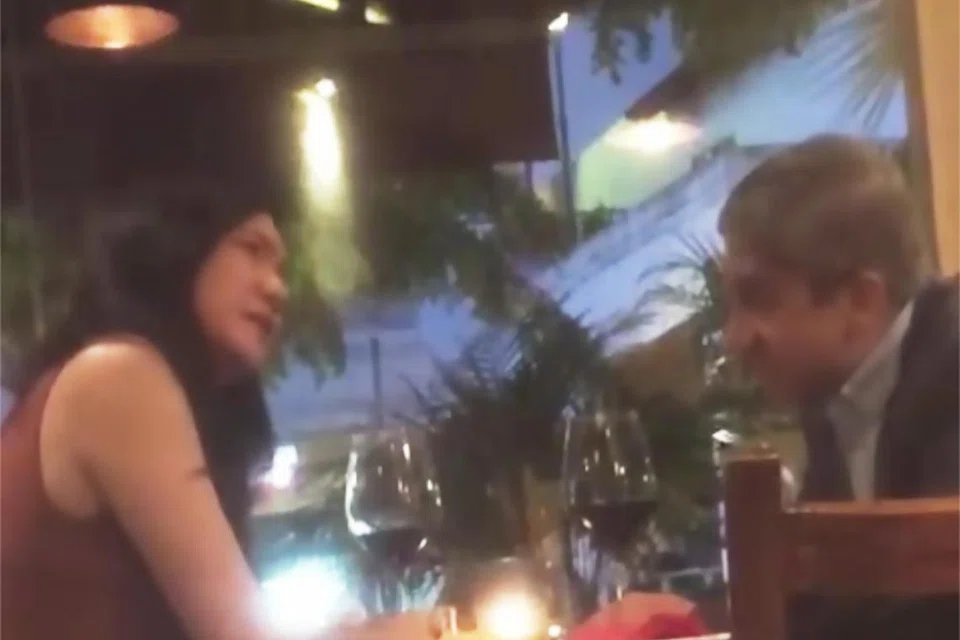 ஓர் உணவகத்தில் ஒரு குவளை ஒயினுடன் திரு பெரேரா, திருவாட்டி சியாவைப் போல தோற்றமளிக்கும் ஒரு பெண்ணின் கையை வருடிக் கொடுப்பதை 15 வினாடி காணொளியில் பார்க்க முடிந்தது.