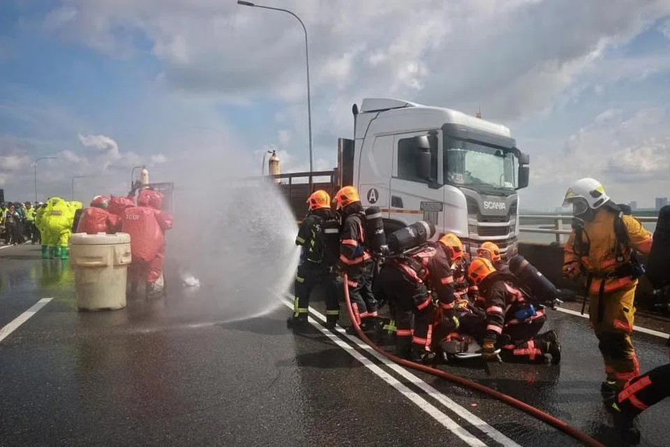 துவாஸ் இரண்டாம் பாலத்தில் வேதிப்பொருள் பேரிடர் நிகழ்ந்தால் அதைச் சந்திக்கும் அளவுக்குத் தாங்கள் ஆயத்தமாக இருக்கிறோமா என்பதைக் கண்டறிய, சிங்கப்பூர்-மலேசியா நாடுகளைச் சேர்ந்த சுமார் 16 அமைப்புகளும் நிறுவனங்களும் புதன்கிழமை அந்தப் பாலத்தில் பயிற்சி ஒன்றை நடத்தின.