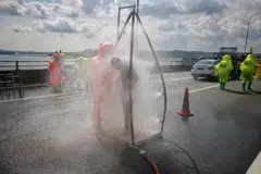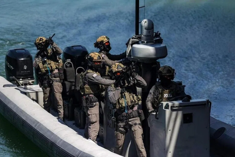 கடலோரக் காவல்படையின் ஆக உயரிய சிறப்புப் பணி படைப்பிரிவினர், அந்தப் பயிற்சி நிலையத்தில் பிணையாளி ஒருவரை மீட்கும் திறனை நேரடியாக விளக்கிக் காட்டினர்.