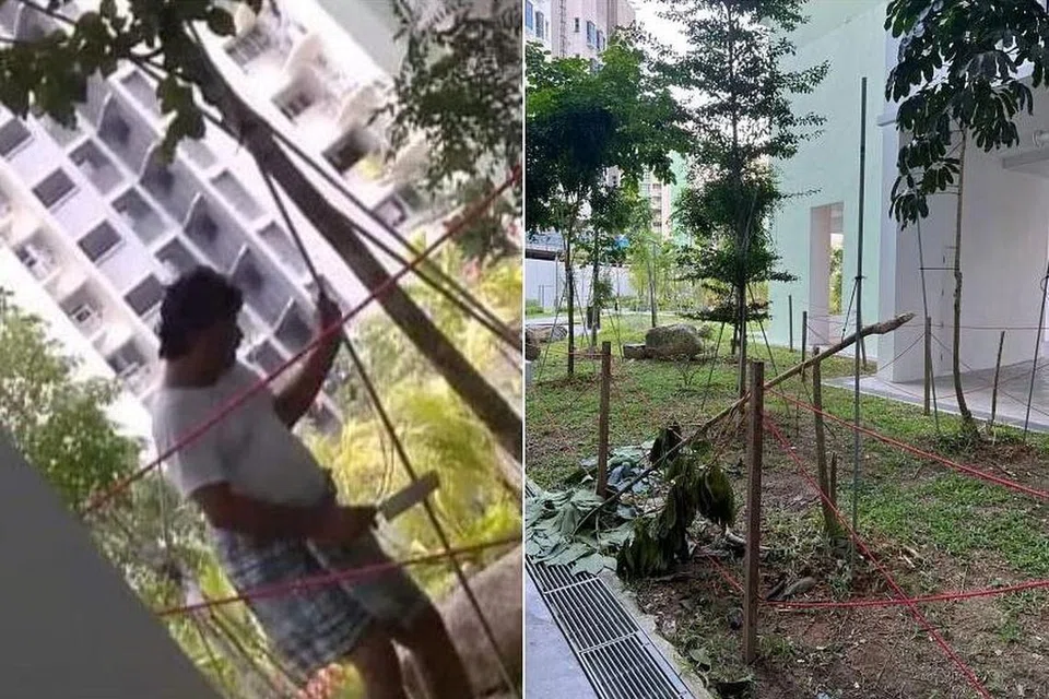 தெம்பனிஸ் ஸ்திரீட் 62ல் உள்ள வீவக புளோக் 648Cக்கு அருகே ஒரு குடியிருப்பாளர் மரம் ஒன்றை வெட்டிச் சாய்த்ததைக் கண்டதாகத் தனக்குத் தகவல் கிடைத்ததென நகர மன்றப் பேச்சாளர் ஒருவர் ஆகஸ்ட் மாதம் 23ஆம் தேதியன்று ஸ்ட்ரெய்ட்ஸ் டைம்சிடம் கூறினார்.