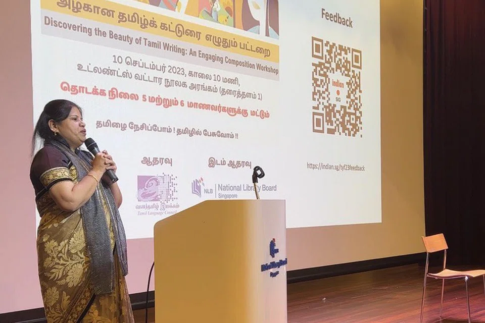 மாணவர்களும் பெற்றோர்களும் ஆர்வத்துடன் கலந்துகொண்ட, தொடக்க நிலை மாணவர்களுக்கான தமிழ்க் கட்டுரைகளை எழுதக் கற்றுத்தரும் பயிலரங்கு கடந்த செப்டம்பர் 10 ஆம் நாள் உட்லண்ட்ஸ் நூலகத்தில் நடைபெற்றது.