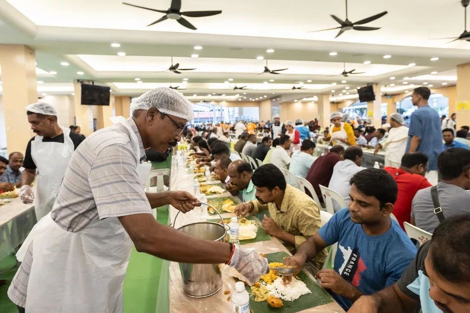 சிங்கப்பூரில் பணிபுரியும் வெளிநாட்டு ஊழியர்களுக்கு வாழையிலை விருந்துபடைத்து மகிழ்ந்தன இந்து அறக்கட்டளை வாரியமும் வெளிநாட்டு ஊழியர்கள் நிலையமும்.