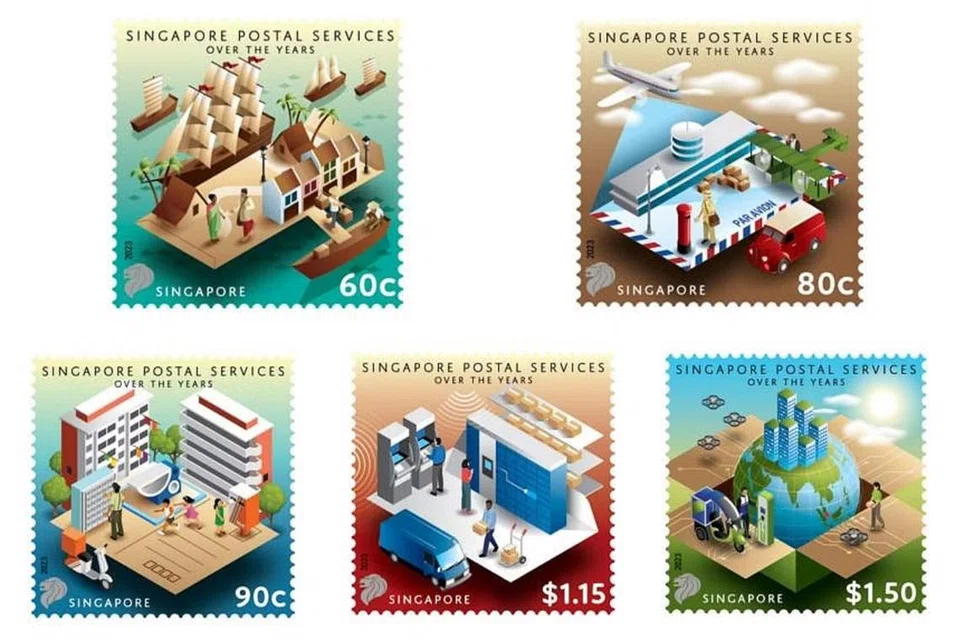 அந்த அஞ்சல் தலைகள் சிங்கப்பூரின் அஞ்சல் சேவையின் உருமாற்றத்தை எடுத்துக்காட்டுகின்றன.