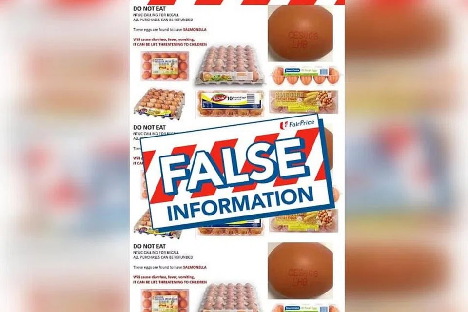 என்டியுசி ஃபேர்பிரைஸ் கடைகளில் விற்கப்படும் முட்டைகள் ஒரு வகை பாக்டீரியா கிருமி தொற்று காரணமாக மீட்டுக் கொள்ளப்படுவதாக வாட்ஸ்அப் செயலியில் வெளியான தகவல் பொய் என்று தெரியவந்துள்ளது.