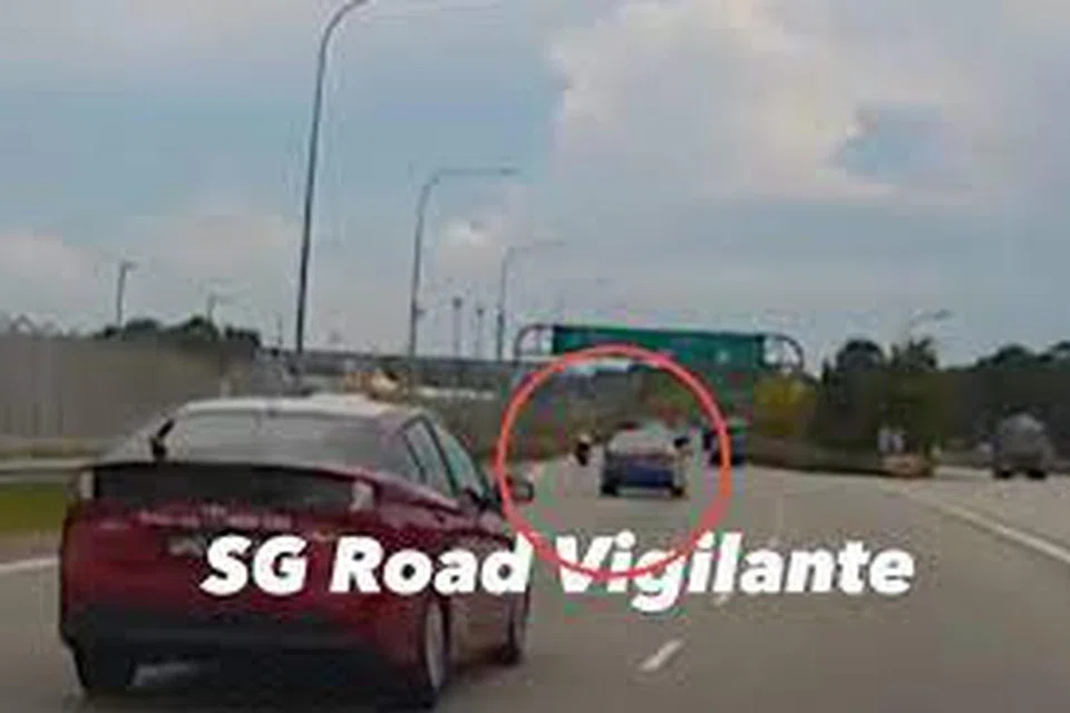 ‘எஸ்ஜி ரோடு விஜிலாண்டே’ ஃபேஸ்புக் பக்கத்தில் பதிவேற்றம் செய்யப்பட்ட காணொளி, விரைவுச்சாலையின் இடது தடத்தில் நீல நிற டாக்சி ஒன்று மோட்டார்சைக்கிள் மீது மோதியதைக் காட்டியது.