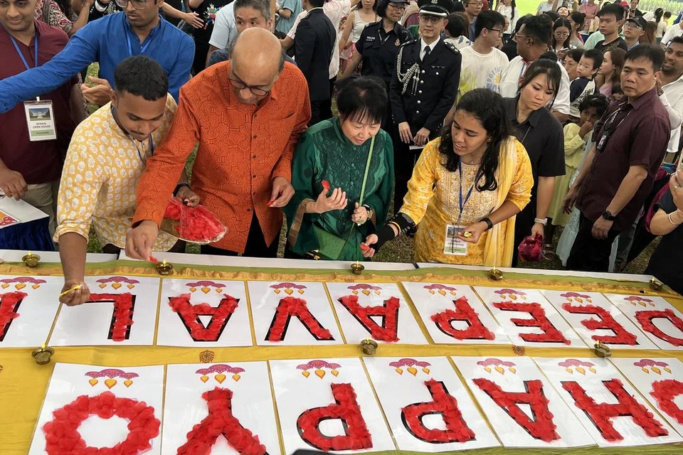 அதிபரும் துணைவியாரும் வெவ்வேறு அமைப்புகளின் சாவடிகளையும் மக்கள் சூழப் பார்வையிட்டனர். இந்து இளையர் கட்டமைப்பின் ‘இன்பத் தீபாவளி’க் கோலத்தையும் பூவிதழ்கள் கொண்டு அலங்கரித்தனர்.