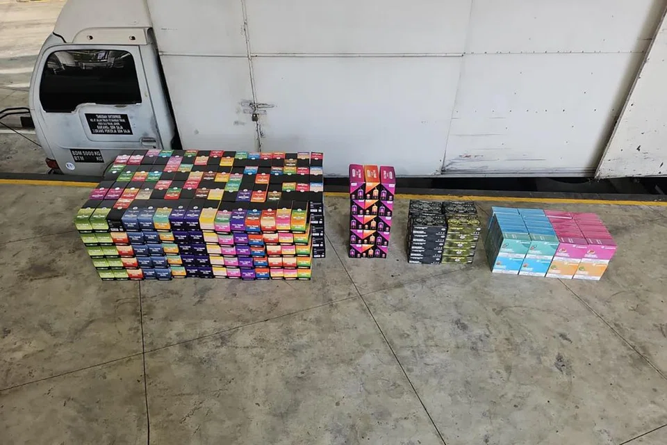 மாறன் சேகரிடமிருந்து 750 மின்சிகரெட்டுகளும் அவை தொடர்பான 3,150 பாகங்களும் கைப்பற்றப்பட்டதாக சுகாதார அறிவியல் ஆணையமும் குடிநுழைவு, சோதனைச்சாவடி ஆணையமும் தங்களின் கூட்டறிக்கையில் தெரிவித்தன.