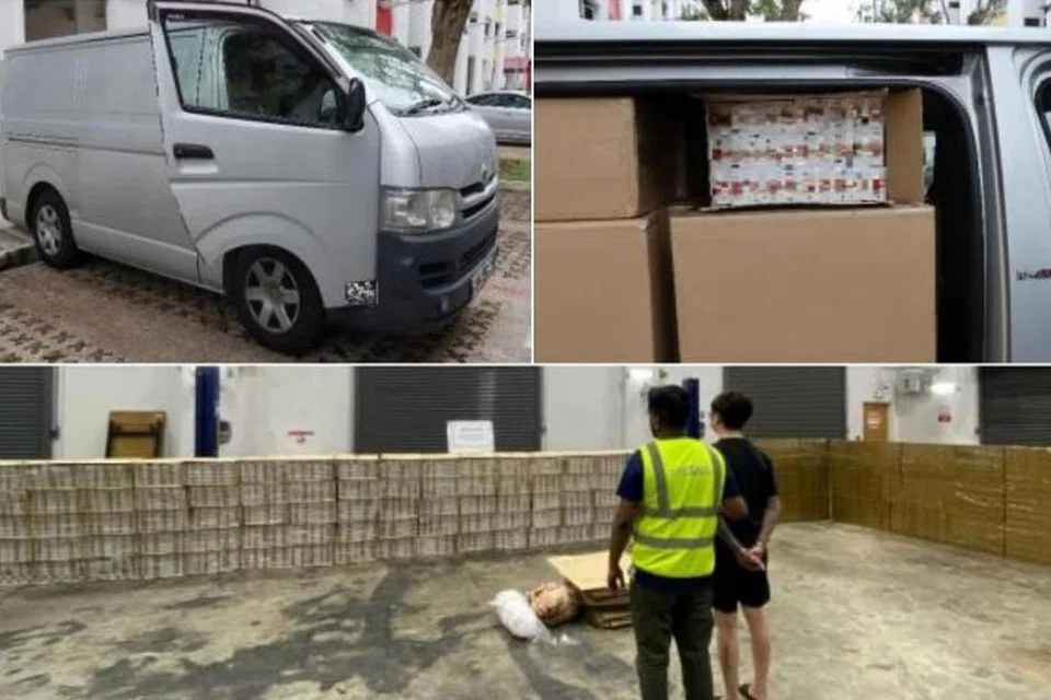 ஈசூன் அவென்யூ 5ல் உள்ள கார்ப்பேட்டையில் கடந்த புதன்கிழமை (டிசம்பர் 20) ஆடவர் ஒருவர் வேன் ஒன்றின் கதவைத் திறந்தபோது அதனுள் தீர்வை செலுத்தப்படாத சிகரெட்டுகள் இருப்பதை அதிகாரிகள் கண்டனர்.