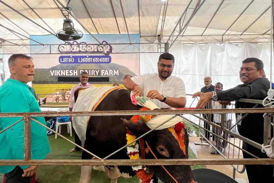 தேக்கா பகுதியில் பொங்கல் கொண்டாட்டங்களுக்காக கொண்டுவரப்பட்ட விக்னேஷ் பால் பண்ணையைச் சேர்ந்த மாடுகள், மக்கள் பார்க்கும் வகையில் காட்சிக்கு வைக்கப்பட்டிருந்தன. மாட்டுப் பொங்கலை முன்னிட்டு அந்த மாடுகள் அலங்கரிக்கப்பட்டிருந்தன. மேலும், சிறப்பு வழிபாட்டிற்கும் பொங்கல் வைத்து படைப்பதற்கும் ஏற்பாடுகள் செய்யப்பட்டிருந்தன.