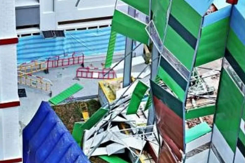 கட்டுமானத் தளத்தில் பொருள்களை அள்ளும் சாதனம் சாய்ந்து தடுப்புப் பலகைகள் மீது மோதியது. இதில் சில தடுப்புப் பலகைகள் உடைந்துவிழுந்தன.