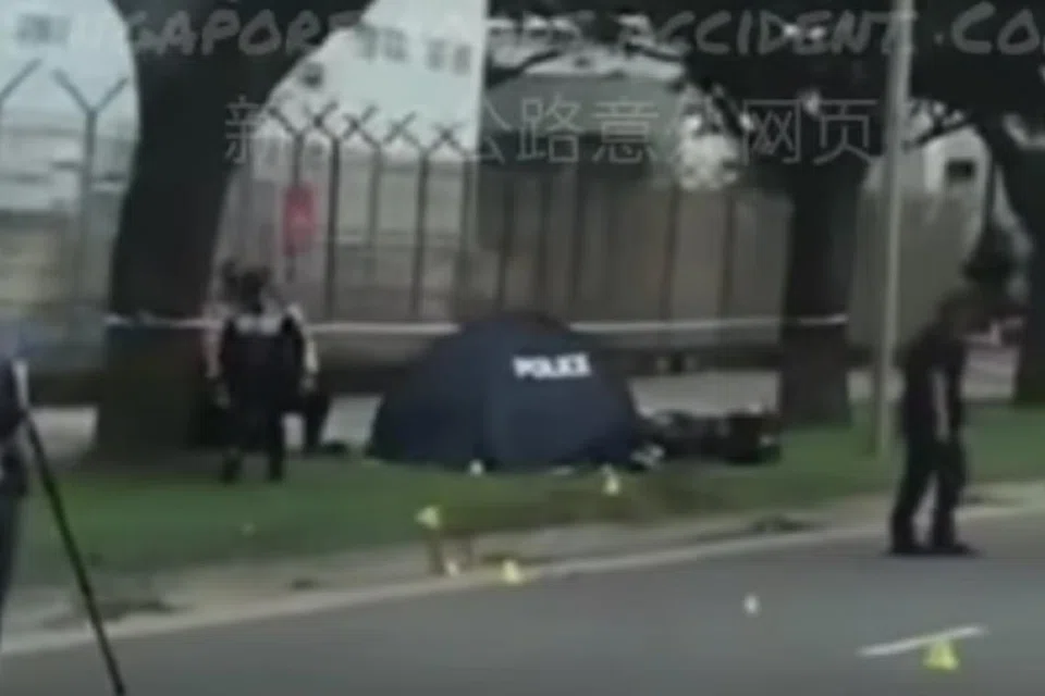 ‘சிங்கப்பூர் ரோட்ஸ் ஆக்சிடண்ட்’ என்ற ஃபேஸ்புக் குழு வெளியிட்ட காணொளியில் சாலையோரமாக நீலநிறக் கூடாரம் போடப்பட்டிருந்ததைக் காண முடிந்தது. அருகில் மோட்டார்சைக்கிள் ஒன்று விழுந்துகிடந்தது.